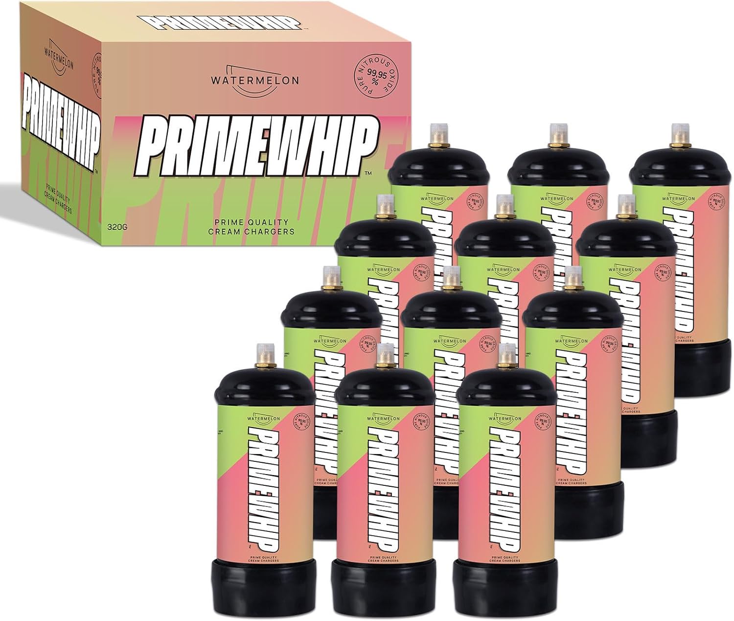 + Free ShippingPrime Whip Cream Charger 320G Watermelon delivers premium 99.95% pure nitrous oxide for smooth, reliable performance with zero waste. Designed for clean flavour, maximum efficiency, and professional results. Each tank is fully inspected and shipped discreetly.
